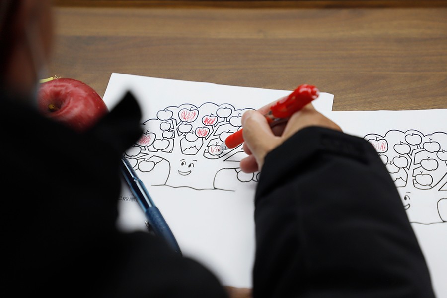 1、找积极的因素。老年朋友根据医生的问题,结合自己的答案,给图纸上的苹果填充蓝色或者红色。这样可以帮助大家寻找积极的因素,并且把消极因素转化成积极因素。引导其合理表达自己内心的真实感受 ,抒发内心消极情绪,并开始认真审视自己的生活环境。