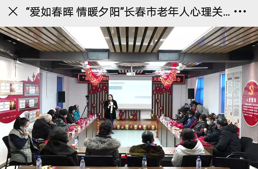 “爱如春晖 情暖夕阳”长春市老年人心理关爱联谊会是由长春市老龄工作委员会办公室主办,长春市第六医院承办,长春市春之翼志愿者协会协办,分别开展了记忆、睡眠、关爱三场活动。希望我们通过创新的手段、创意的活动,早预防、早发现、早治疗,通过有效的干预,解决老年人的睡眠、记忆和孤独等问题。我们也将会继续深入“摸底”,老年人心理健康的状况和需求,构建老年人心理健康服务体系,积极应对人口老龄化,让老年人心理健康得到更多保障。
